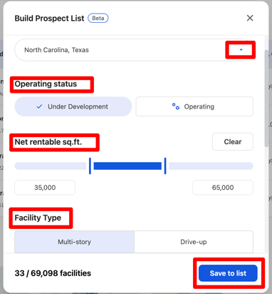 The Prospecting Tool is one of the fastest ways to identify and connect with potential off-market self-storage deals inside TractIQ. With over 69,000 facilities tracked across the U.S., you can instantly filter, segment, and build personalized prospect lists; helping you move from data to outreach in seconds.