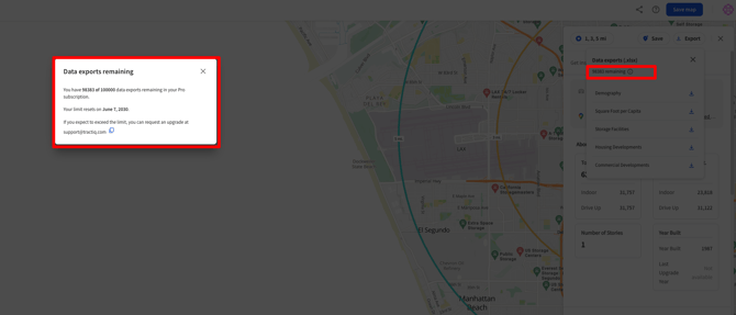 Each TractIQ subscription tier includes a set number of data exports, designed to give you flexibility while keeping usage aligned with how you work in the platform. This article explains how export limits work, what counts as an export, and where to find or adjust your limits.